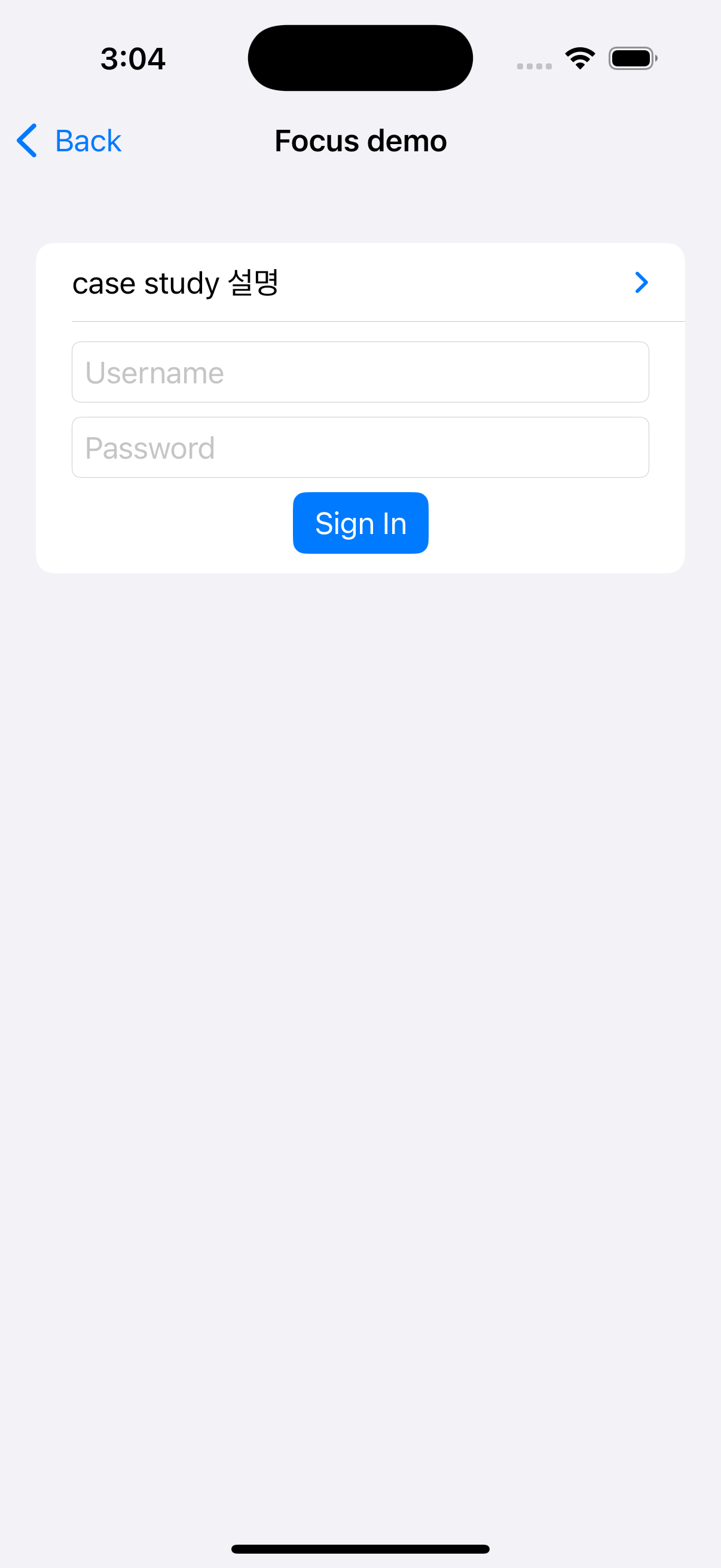 - "Sign In" 버튼을 클릭하면 signInButtonTapped 액션이 호출되고, 입력값에 따라 적절한 필드에 초점이 이동합니다.