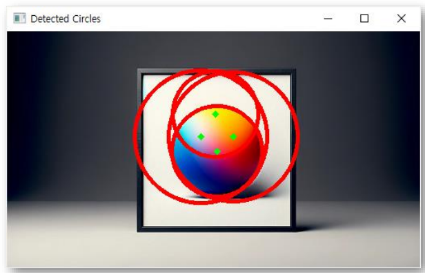 # HoughCircles 함수를 사용하여 원 검출