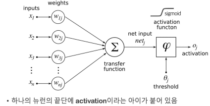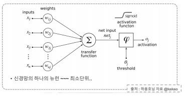 -> 입력, 가중치, 활성화 함수, 출력으로 구성