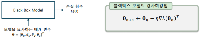-> 블랙박스(black box) – 모델의 내부 동작을 이해하기 어렵지만, 일반적으로 뛰어난 성능을 낼 수 있는 딥러닝과 같은 모델이 이에 해당