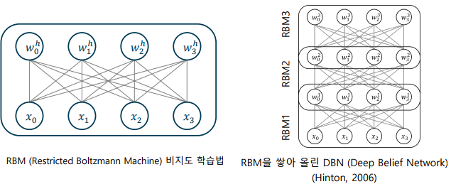 -> 2006년 제안된 제한 볼츠만 머신(restricted Boltzmann machine)을 이용한 사전 학습 방법