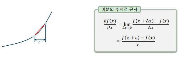 -> 미분의 정의로부터 극한 연산을 근사하여 기울기를 수치적으로 구할 수 있음