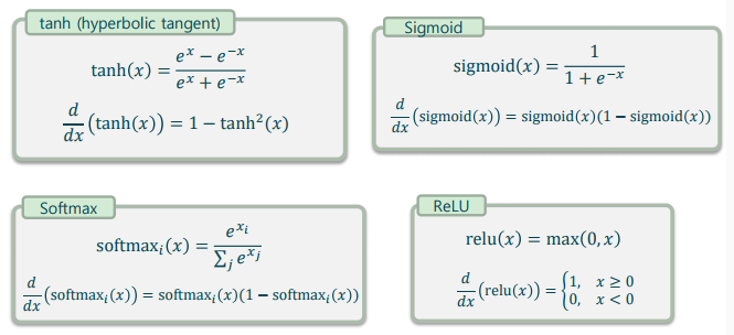 -> 제곱, 로그함수, 지수 함수 등을 사용하여 미분이 용이