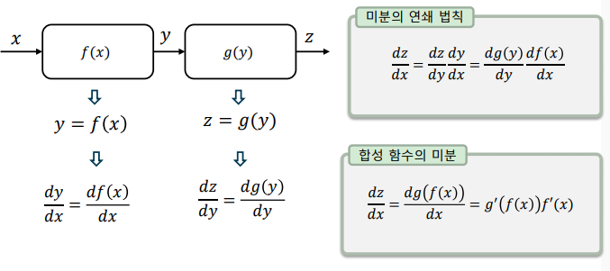 미분과 연쇄 법칙: 직렬 연결된(cascade) 함수는 연쇄 법칙(chain rule)로 표현