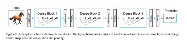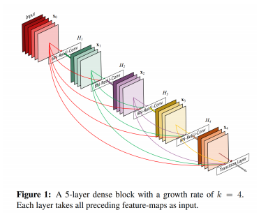 Densely Connected Network: ResNet을 계승하여, skip connection을 dense connection으로 변경한 모델