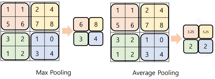 평균값 풀링(average pooling): 평균값을 사용
