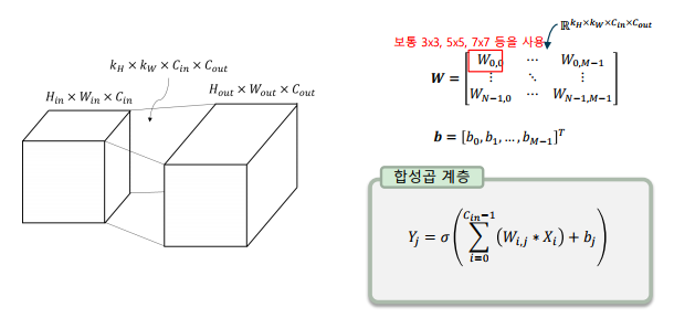 합성곱으로 이루어진 뉴런을 전결합 형태로 연결한 것으로 가중치의 형식을 필터(filter) 또는 커널(kernel)이라고 부름