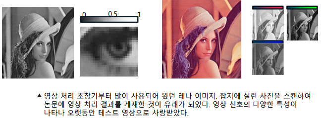 -> 컬러 영상은 보통 RGB 등의 3개 채널로 표현