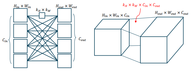 합성곱 계층은 번의 합성곱 연산으로 이루어짐, 편향은 각 출력마다 하나의 스칼라 합으로 이루어짐