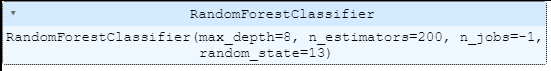 rf_clf = RandomForestClassifier(random_state=13, n_jobs=-1)