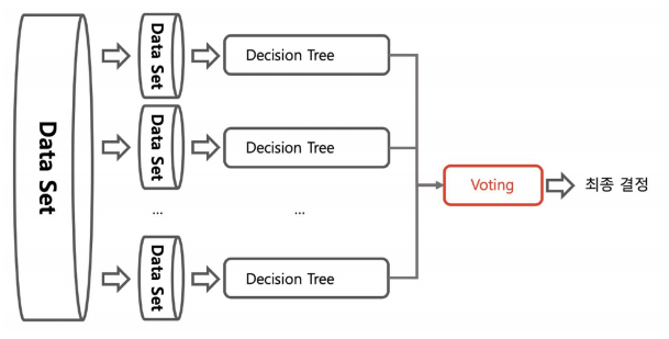 -> 각각의 분류기에 데이터를 각각 샘플링해서 추출하는 방식은 부트스트래핑 분할 방식