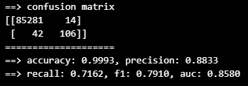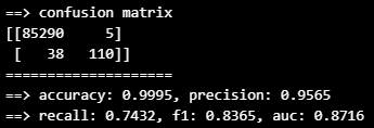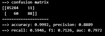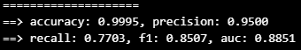 print('==> recall: {0:.4f}, f1: {1:.4f}, auc: {2:.4f}'.format(re, f1, auc))