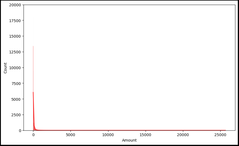 sns.histplot(raw_data['Amount'], color='r', kde=True)