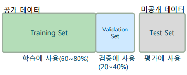 -> 데이터셋을 학습용, 검증용, 테스트용으로 나누어 사용