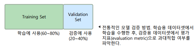 -> 전체 데이터셋을 학습용과 검증용(validation)으로 나누어 사용
