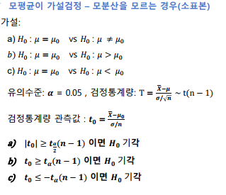 -> 검정결과 귀무가설을 선택하게 되면 귀무가설을 기각하지 못한다고 표현함