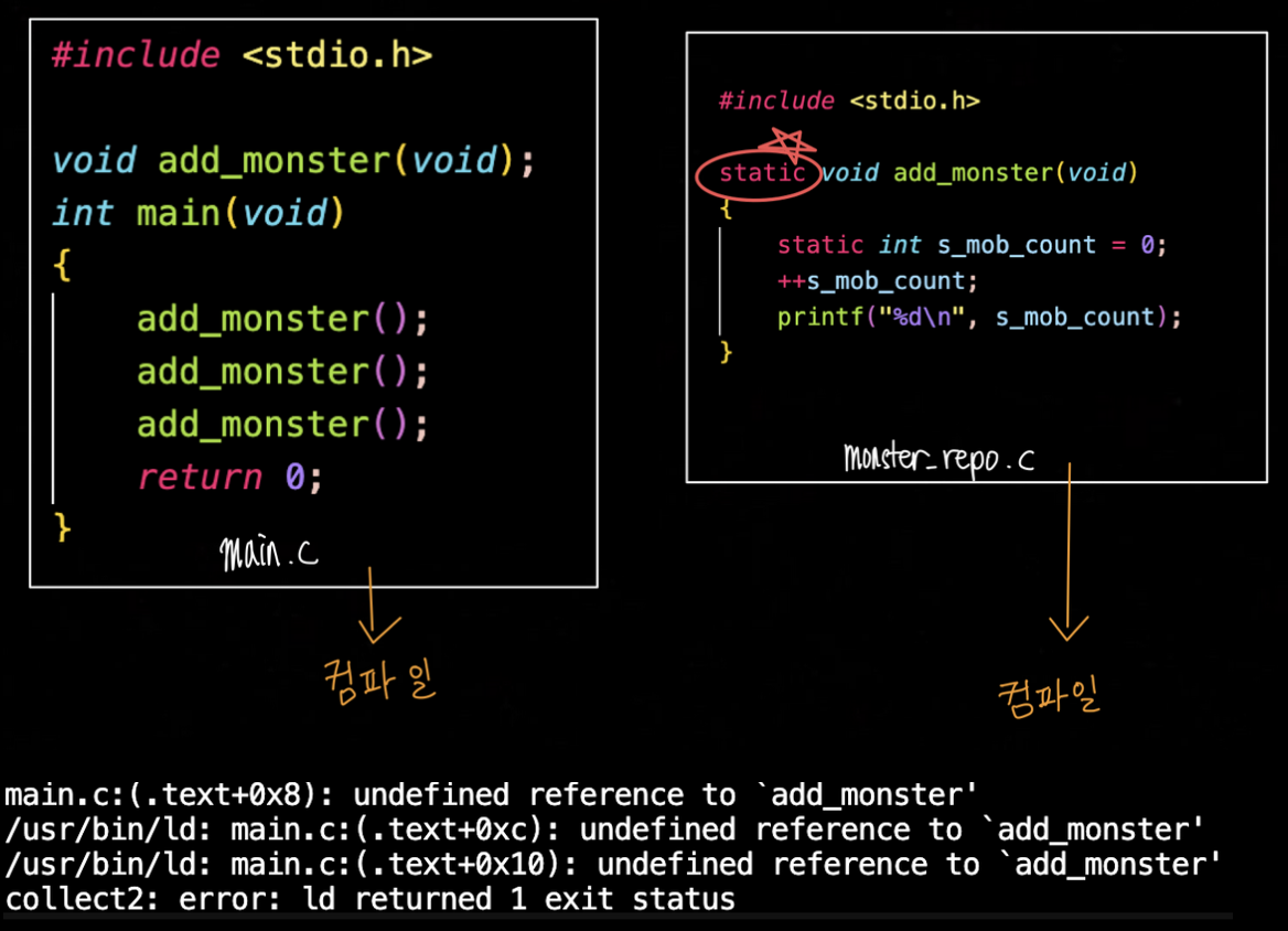 다른 파일에서 링크 못한다.