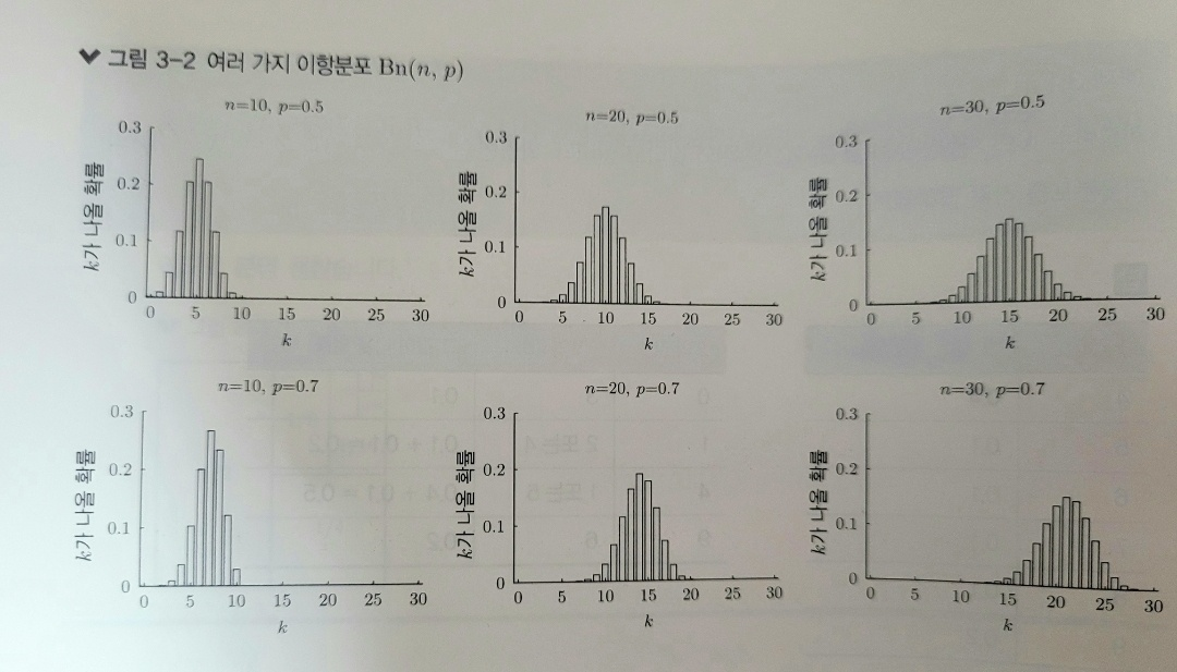 연속된 n번의 독립적인 시행에서 각 시행이 p확률을 가질 때의 이산확률분포