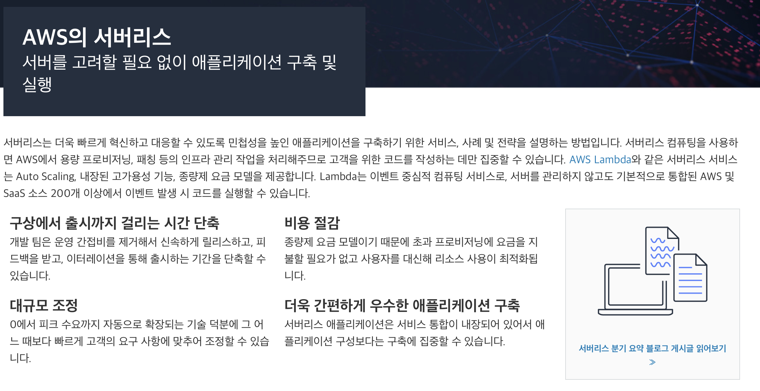 - 이 페이지에서는 AWS 서버리스에 관해서 다룰 예정