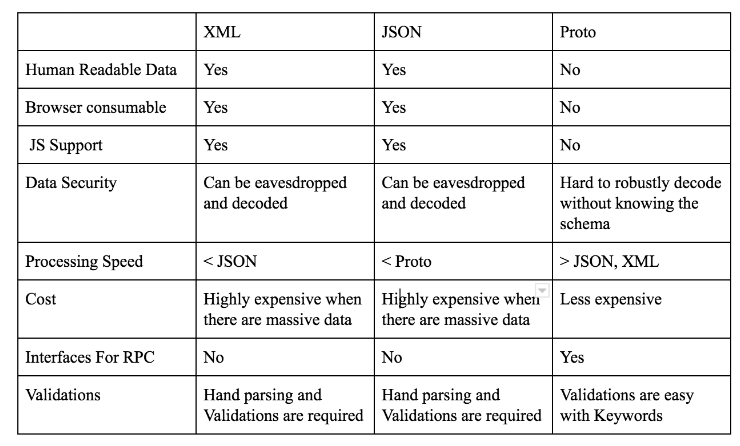 - 대표적인 종류 XML, JSON, Protocol buffers(proto)