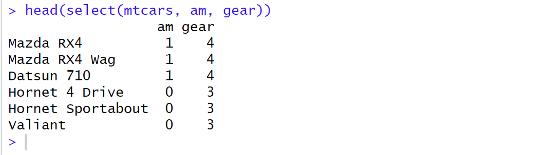 -> 변속기(am)과 기어(gear) 데이터만 추출함.