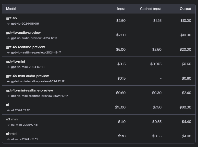 다만, 위와 같이 각 모델 마다 성능의 차이 외에도 context length도 차이가 나며 input token과 output token의 가격도 차이가 나게됩니다.