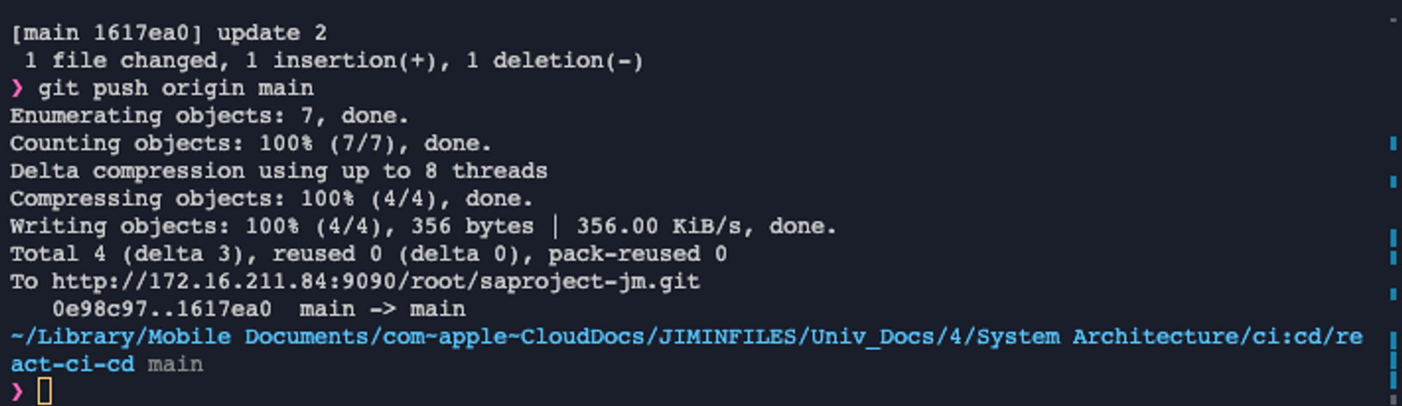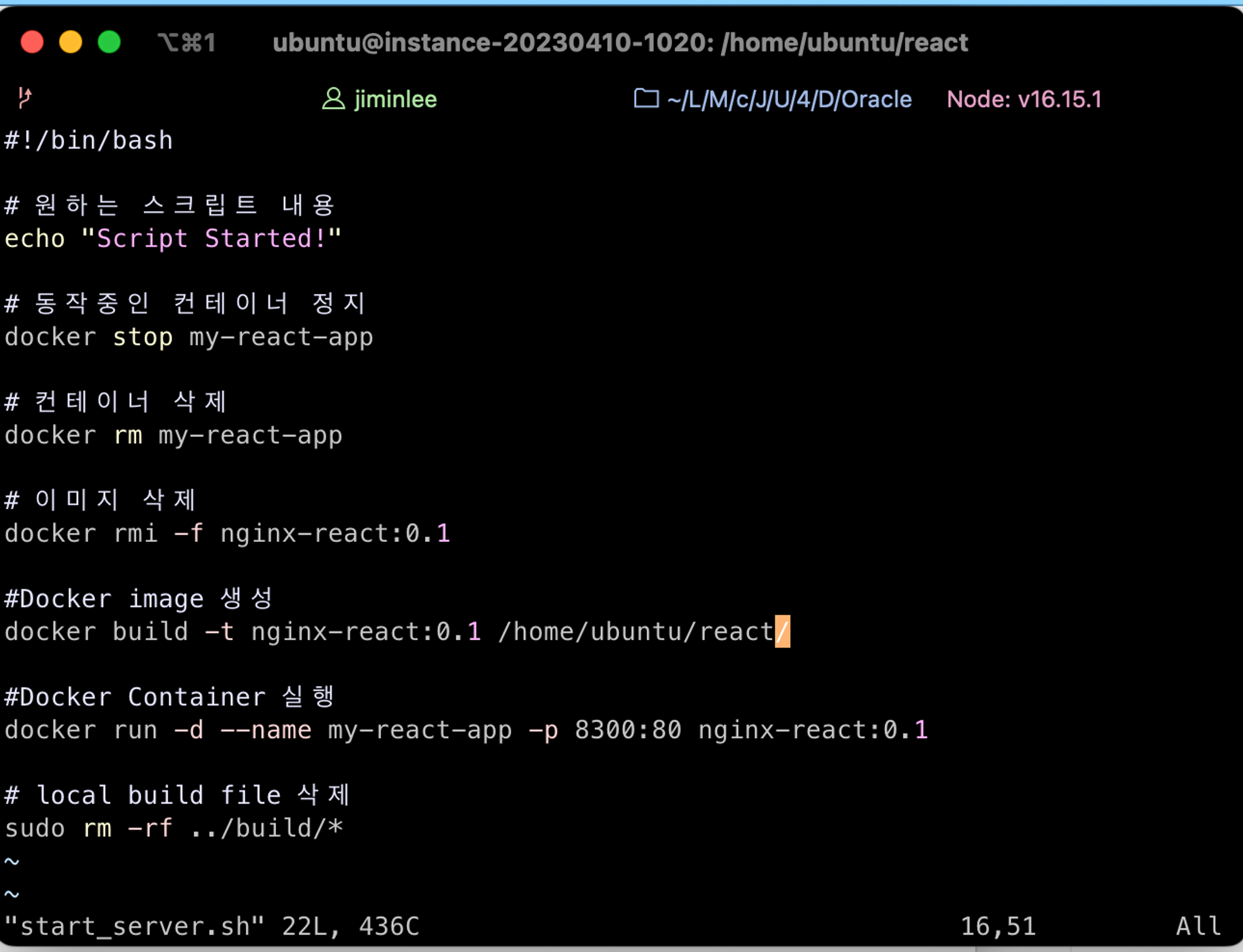 우선, pull 및 react build가 잘 되는지 확인해 보았다.