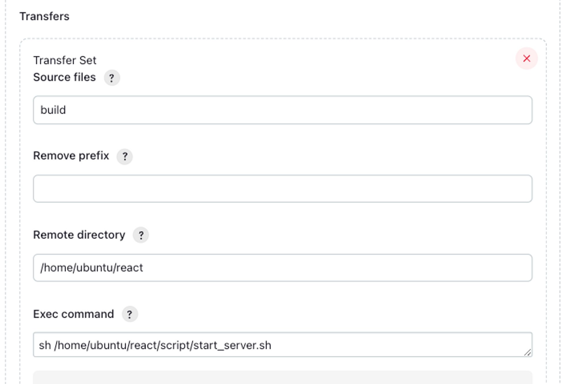 SSH 설정을 통해 클라우드 서버에 연결이 되었기 때문에 Pipeline Script를 이용해서 젠킨스 서버 경로에 있는 리액트 파일을 클라우드 서버로 전달해줘야한다.