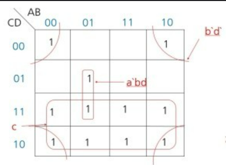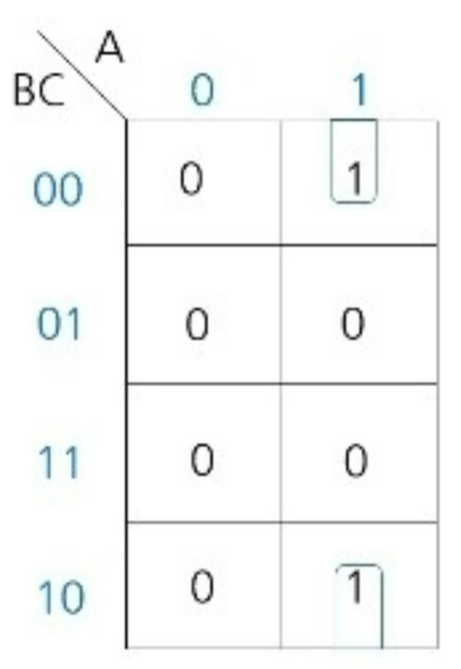 한 묶음안의 공통된 변수들은 AND로 묶음끼리는 OR로 묶는다