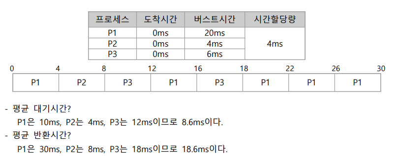기본적으로 FCFS와 동일하지만 시간 할당향 동안만 실행하는 기법