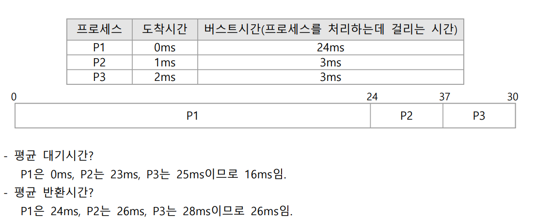 먼저 요청한 프로세스를 먼저 처리하는 방식