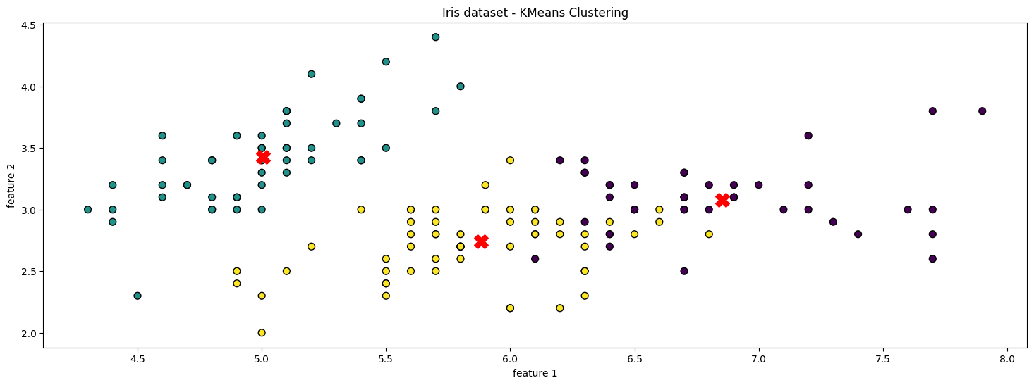 plt.title('Iris Dataset - KMeans Clustering')