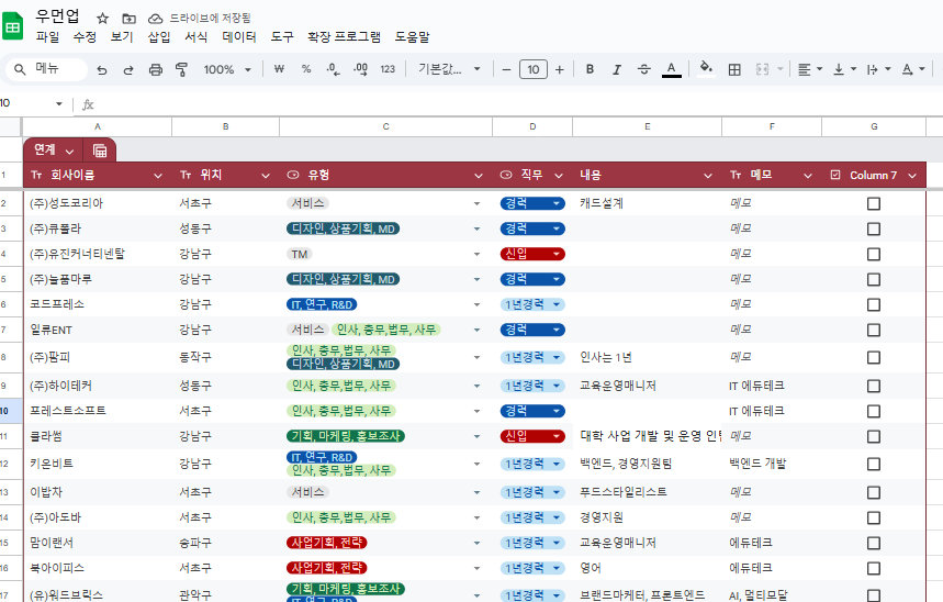 홈페이지에서는 보기 힘들어서 결국 구글 시트 정리했다.