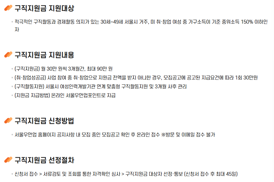 대상: 서울 거주 미취업,미창업여성 (1975~1995년생), 중위소득 150%이하 가구
