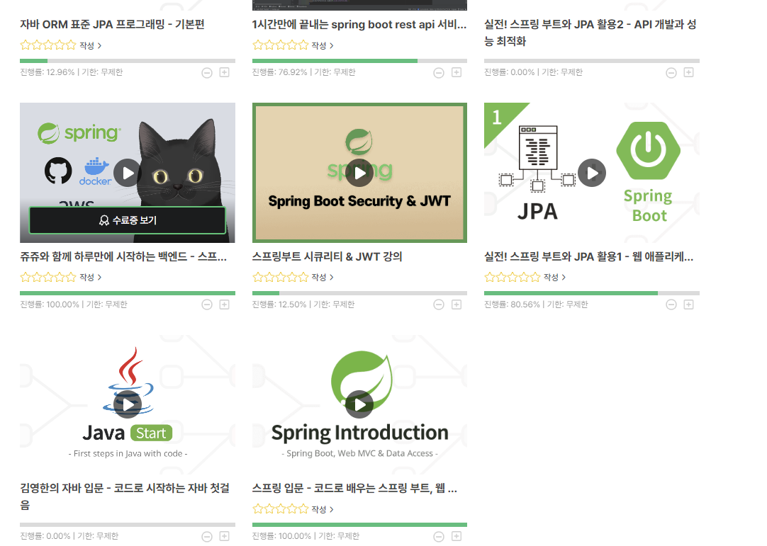 주제 선정이 완료되고, 프로젝트에 Spring을 적용하는 것이 처음이었던 벡엔드 팀은 우선 파트 분배 상관없이 Spring 학습을 시작했다. 같이 성장하는 것이 첫번째 목표였기에, 각자 갓영한의 Spring 강의를 들으며 프로젝트를 위한 경험치를 쌓는데 집중했다.