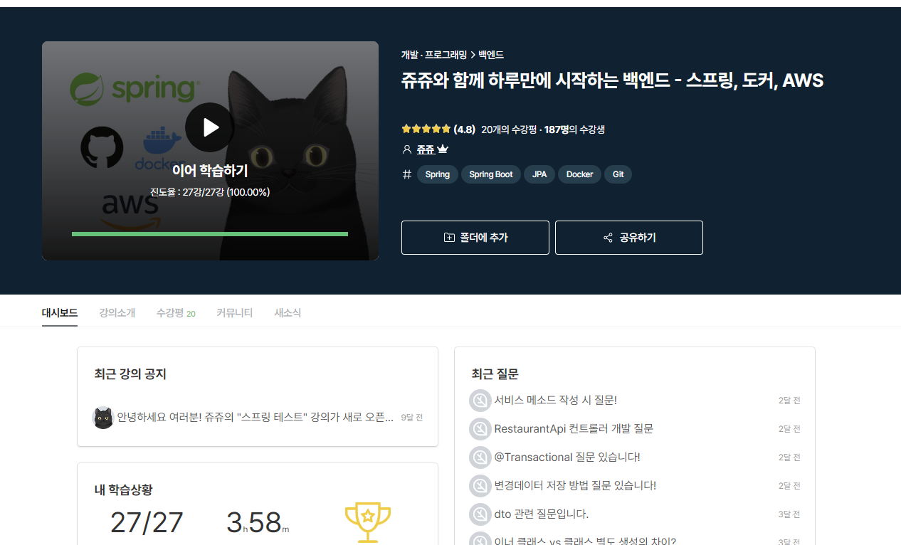 굉장히 간단하지만 빠르게 Rest API 환경과 배포에 대해서 알아볼 수 있는 좋은 강의! 혹시나 저처럼 감이 안오고 급하시다면 빠르게 개념 잡기 좋은 강의라 추천합니다.