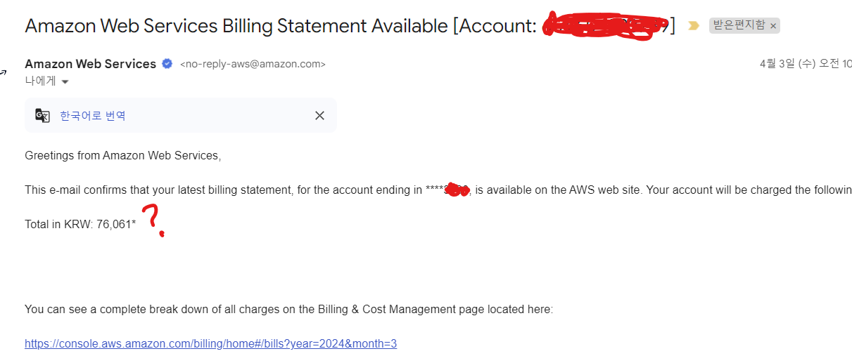 위의 사진은 EC2 한정 청구서였는데, RDS나 탄력적 IP 관련 청구서까지 합치면 더 많다는...