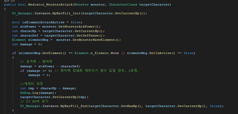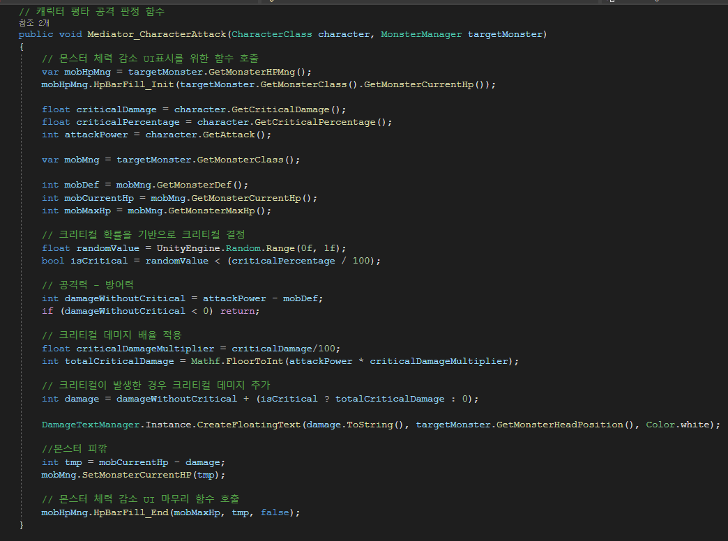 데미지 계산 파트 역시 중재자 패턴을 통해서 이뤄집니다.