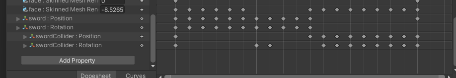 칼을 휘두르는 애니메이션에 프레임 단위로 콜라이더를 이동시켜, 칼의 이동경로에 충돌을 판정할 수 있도록 하였습니다.