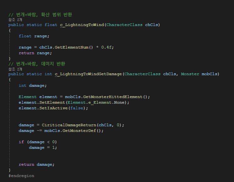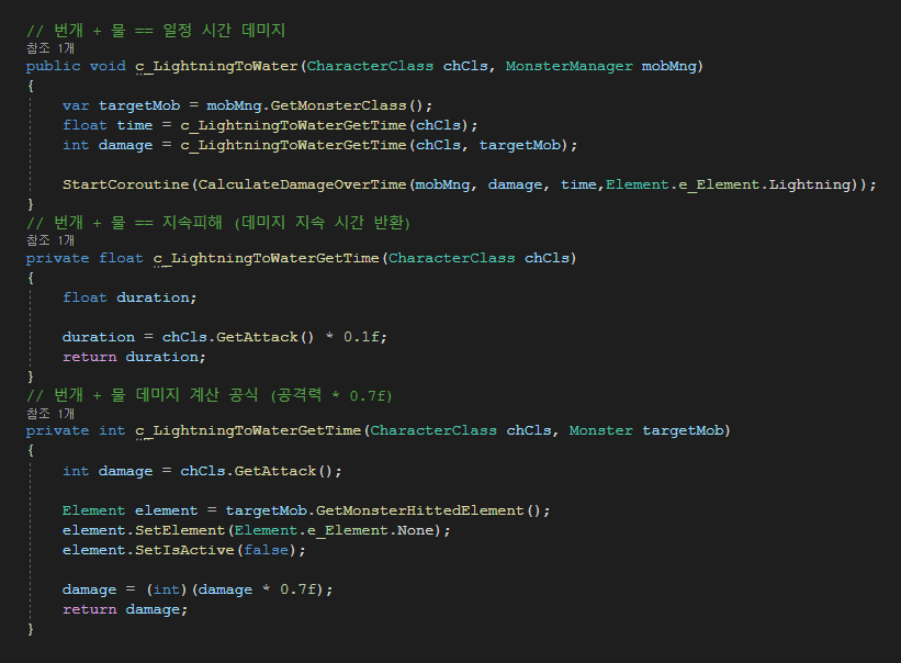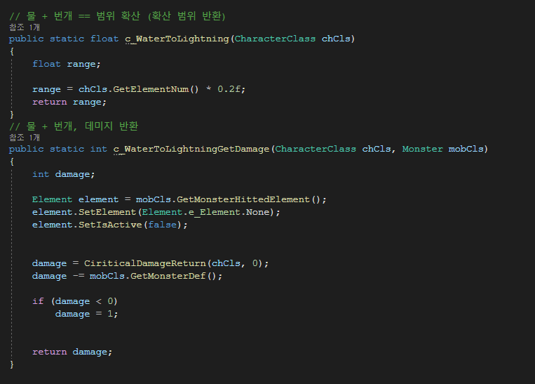 번개-불 원소의 확산 반응은 상단의 확산 범위 반환-데미지 반환 로직과 구조적으로 동일하기에 생략하겠습니다.
