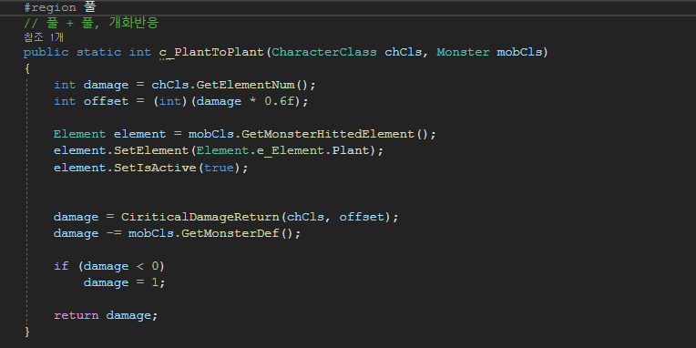 int damage = c_PlantToPlant(chCls, mobCls); // 개화 데미지 계산 함수 호출