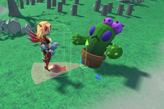 몬스터의 공격은 몬스터의 전방에 위치한 콜라이더 박스를 이용하는 것으로 구현되며, 박스에 캐릭터가 존재할 경우에, 충돌 판정을 얻고 중재자 패턴으로 데미지 계산 함수를 호출합니다.