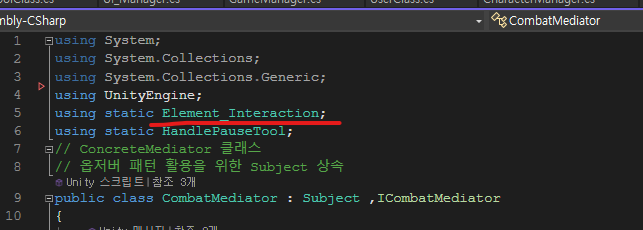 스킬의 원소 반응을 담당하는 클래스인 정적 클래스 Element_Interaction는 static의 형태로, 맴버 메서드를 제공하거나, 싱글턴을 통해서 메서드를 제공합니다.