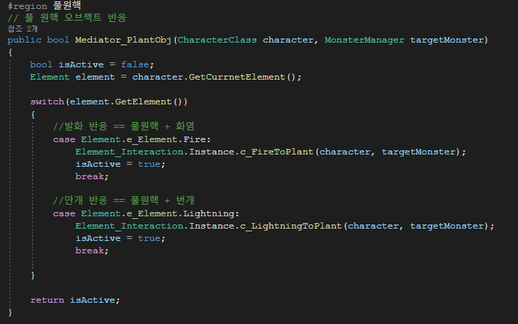 이때, 각 원소 반응은 캐릭터에 중독된 원소 상태를 기준으로 스위치문으로 분기합니다.