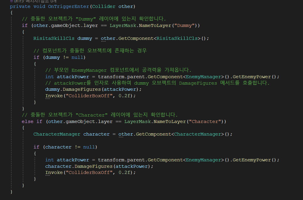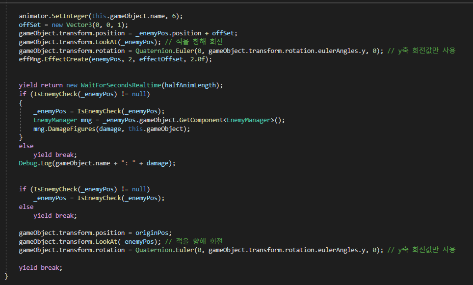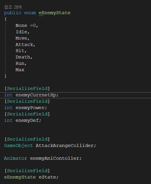 마지막으로 Enemy객체의 EnemyManager를 GetComponent하여 데이터를 세팅합니다.