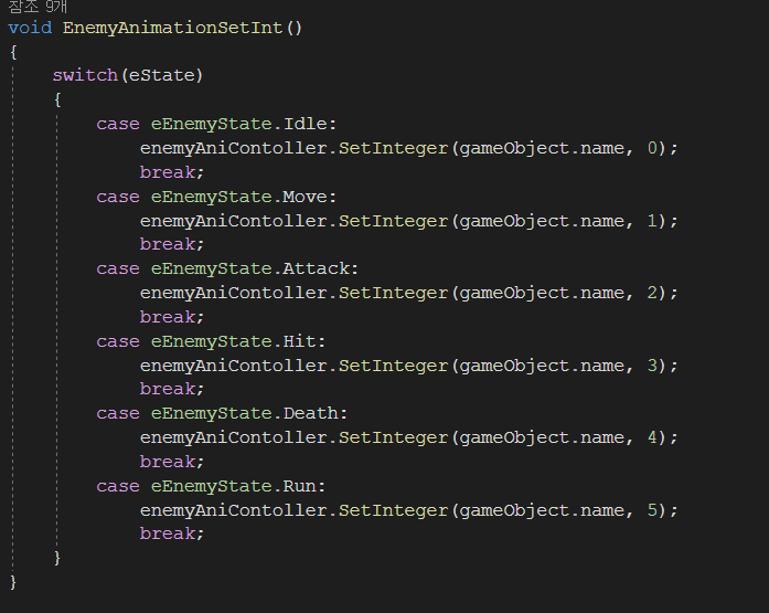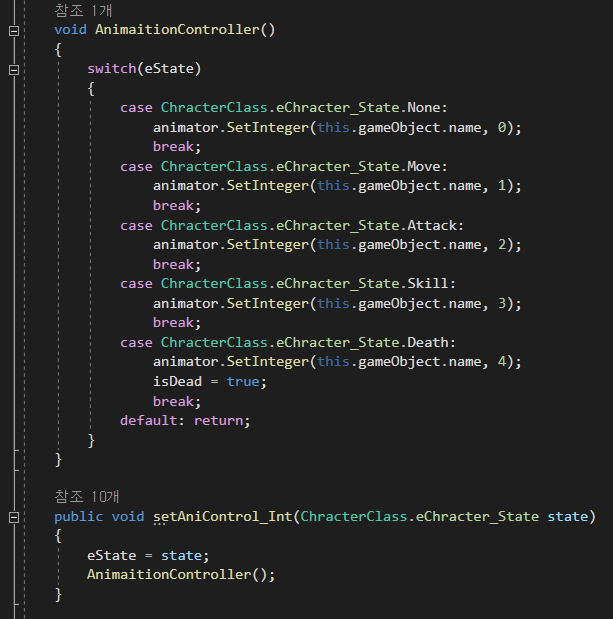 애니메이터에서는 인트형 변수를 이용하여 애니메이션이 제어 됩니다.