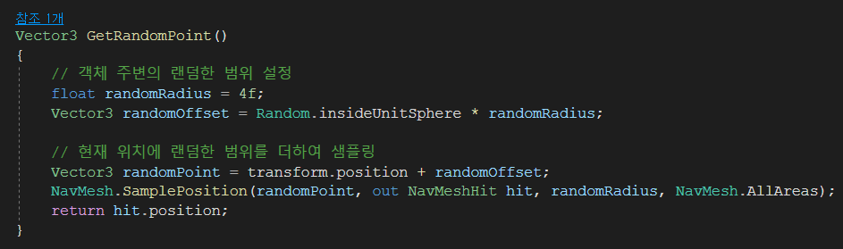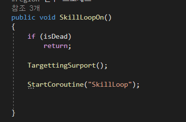FindTargetWithDelay 코루틴 함수를 0.2초 간격으로 호출하기 위해 StartCoroutine 함수를 사용합니다. 이 함수는 일정 시간 간격으로 FindVisibleTargets 함수를 호출하여 주변의 타겟을 찾습니다.