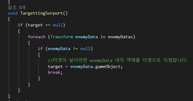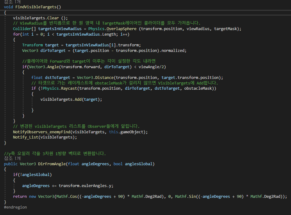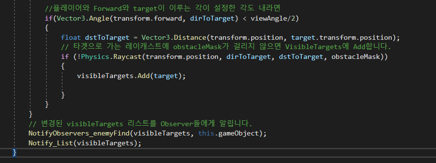 visibleTargets은 범위 내에서 감지한 target 객체들을 저장하는 List타입의 변수입니다.