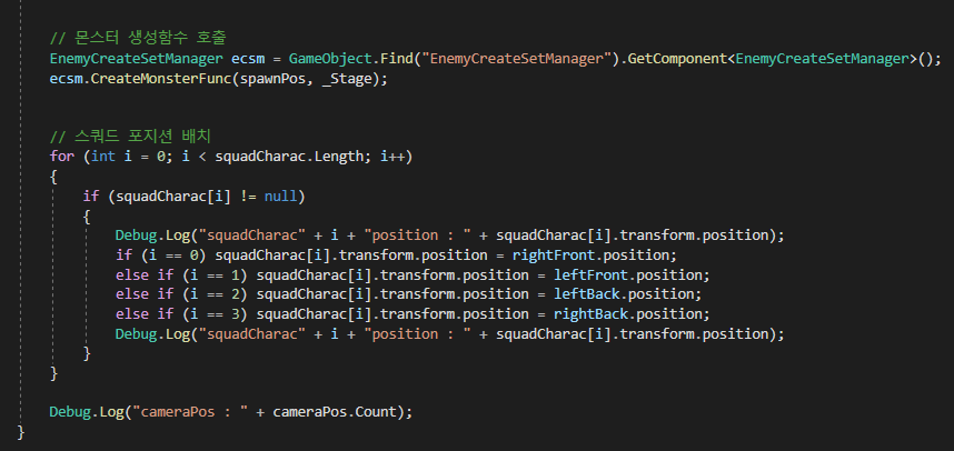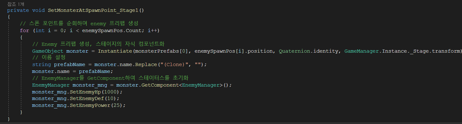 SetMonsterAtSpawnPoint_Stage1() 함수의 구조는 기본적으로 위와 같습니다.