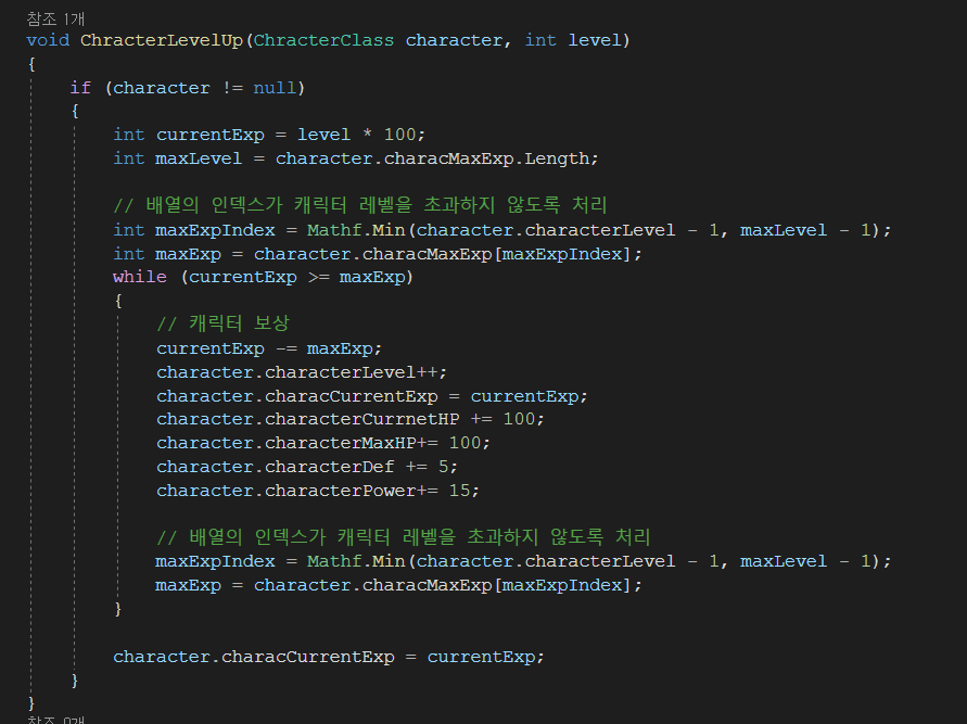 foreach문을 이용하여, 선택한 캐릭터 클래스 객체와 동일한 원소를 찾아냅니다.